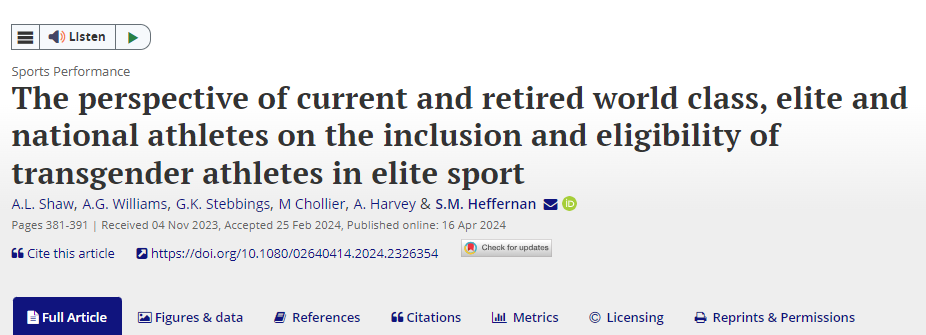 I undersøgelsens eget ”abstract” konkluderes der, at 58 % af deltagerne (der som sagt var ”175 national, elite and world class athletes eligible to compete in the female category”) ”favoured biological sex categorisation … and considered it unfair for trans women to compete in the female category”.