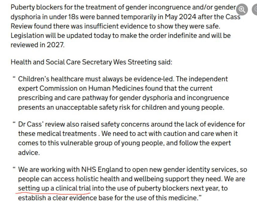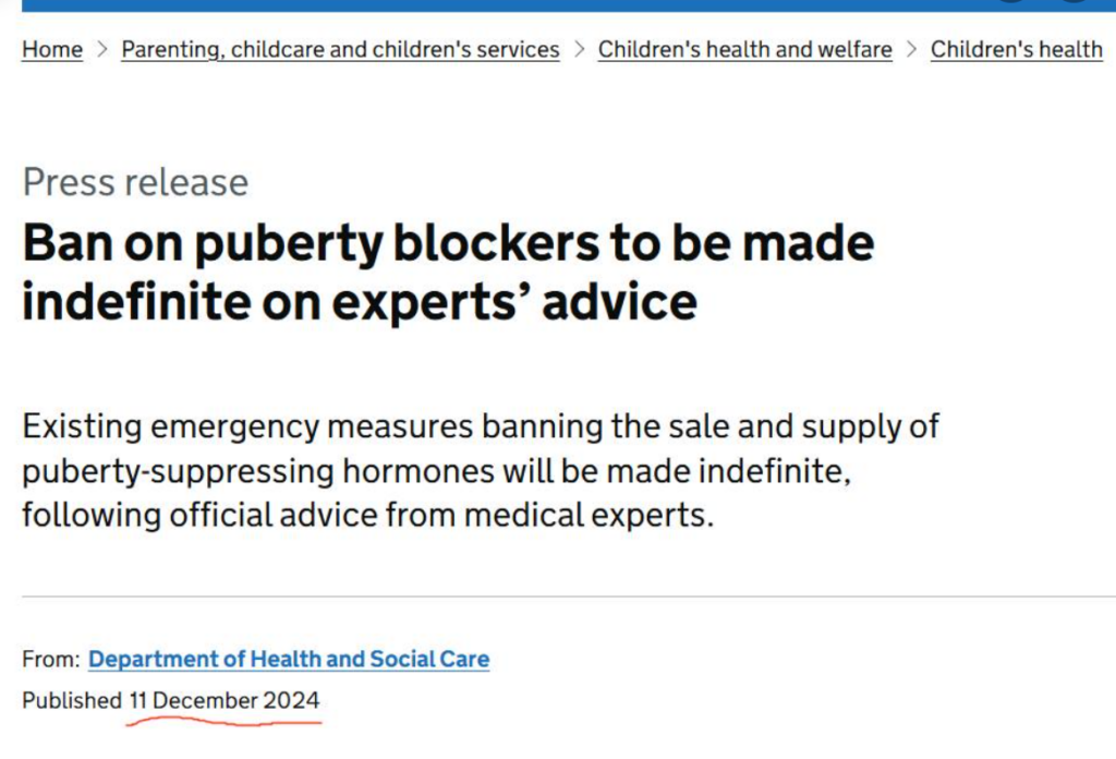 Her er pressemeddelelsen fra de britiske myndigheder: https://www.gov.uk/government/news/ban-on-puberty-blockers-to-be-made-indefinite-on-experts-advice