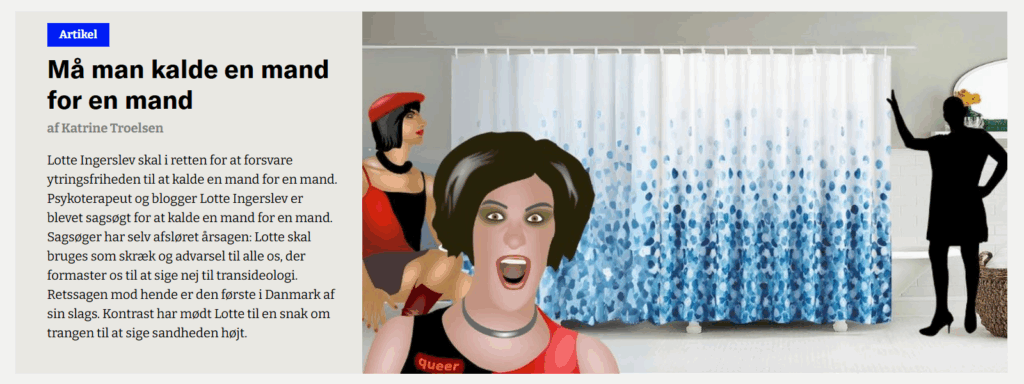Selve beretningen om, hvad det var, der oprindeligt animerede mig til at gå ind i transkøns-debatten og offentliggøre mit første blogindlæg om kønsidentitets-ideologien, og bladets beretning om retssagen og om, hvad jeg er blevet udsat for, siden jeg offentliggjorde min nu så “famøse” artikel, må du læse i selve artiklen.
