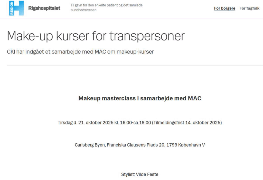 Rigshospitalet har skrevet, at “CKI har indgået et samarbejde med MAC om makeup-kurser”.