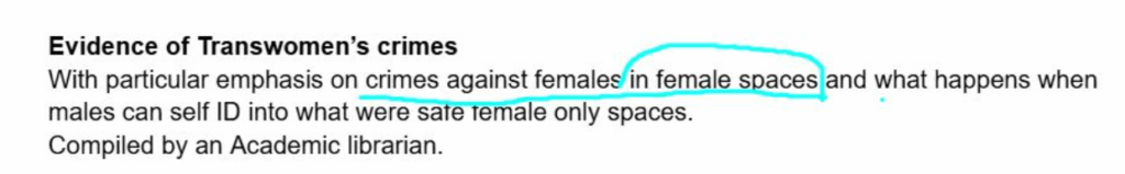 Men lad dig ikke forvirre af ordet “transkvinde”. “Transkvinder” er bare mænd. Det er ikke nødvendigt at finde eksempler på, at “transkvinder” har overfaldet piger eller kvinder på toiletter for at udelukke mænd fra disse steder.