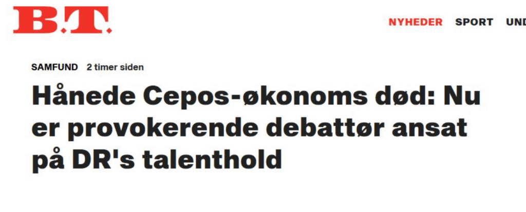 Her er BT-artiklen, hvor resten af mine udtalelser kan læses: https://www.bt.dk/samfund/haanede-cepos-oekonoms-doed-nu-er-provokerende-debattoer-ansat-paa-drs-talenthold