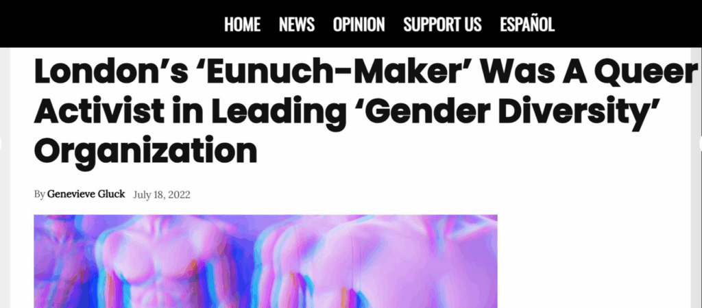 Her er Reduxx-artiklen om “eunukmageren” Marius Gustavson – den tidligere regionsleder af foreningen “FRI”: https://reduxx.info/londons-eunuch-maker-was-a-queer-activist-in-leading-gender-diversity-organization/
