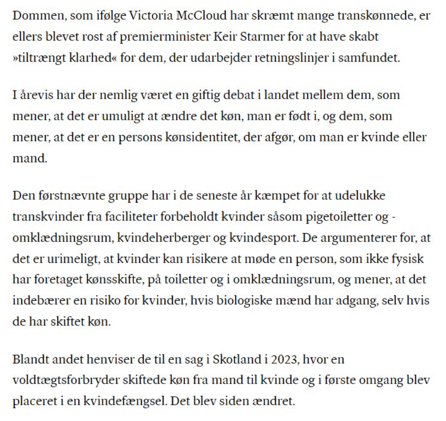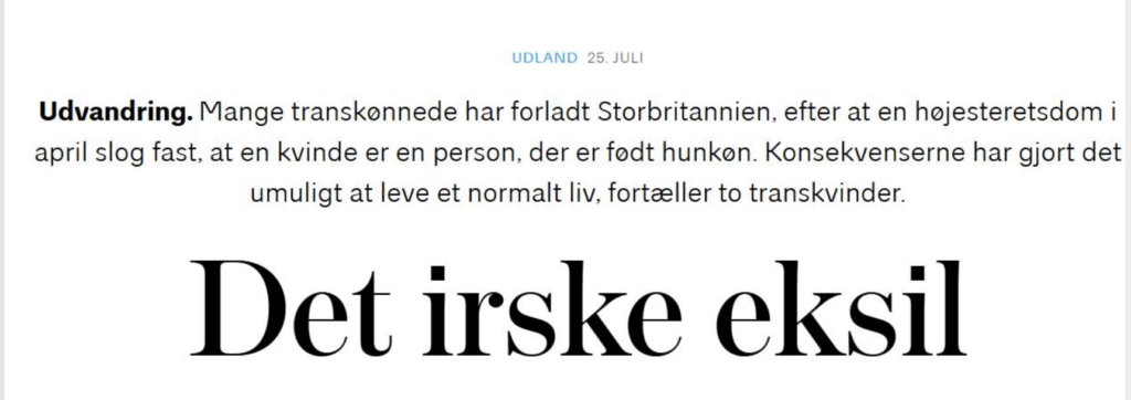 “Flere end 100 transkønnede og deres familier har forladt Storbritannien” siden den famøse højesteretsdom, indleder Weekendavisen artiklen med.
