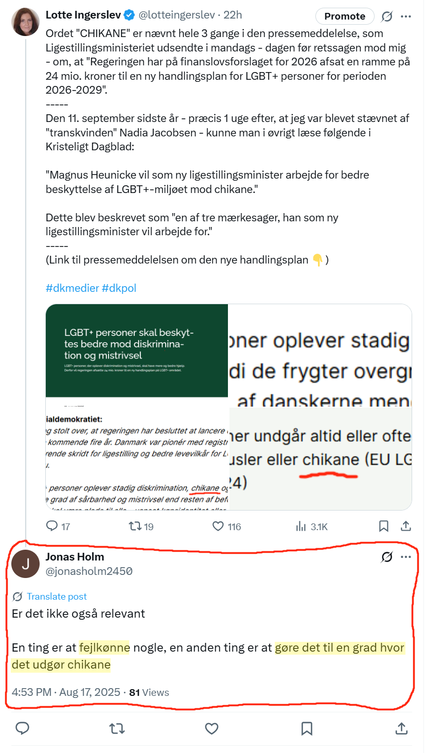 Herunder ses en kommentar fra “X” fra en mand, som lader til at håbe på, at chikane-finten lykkes.